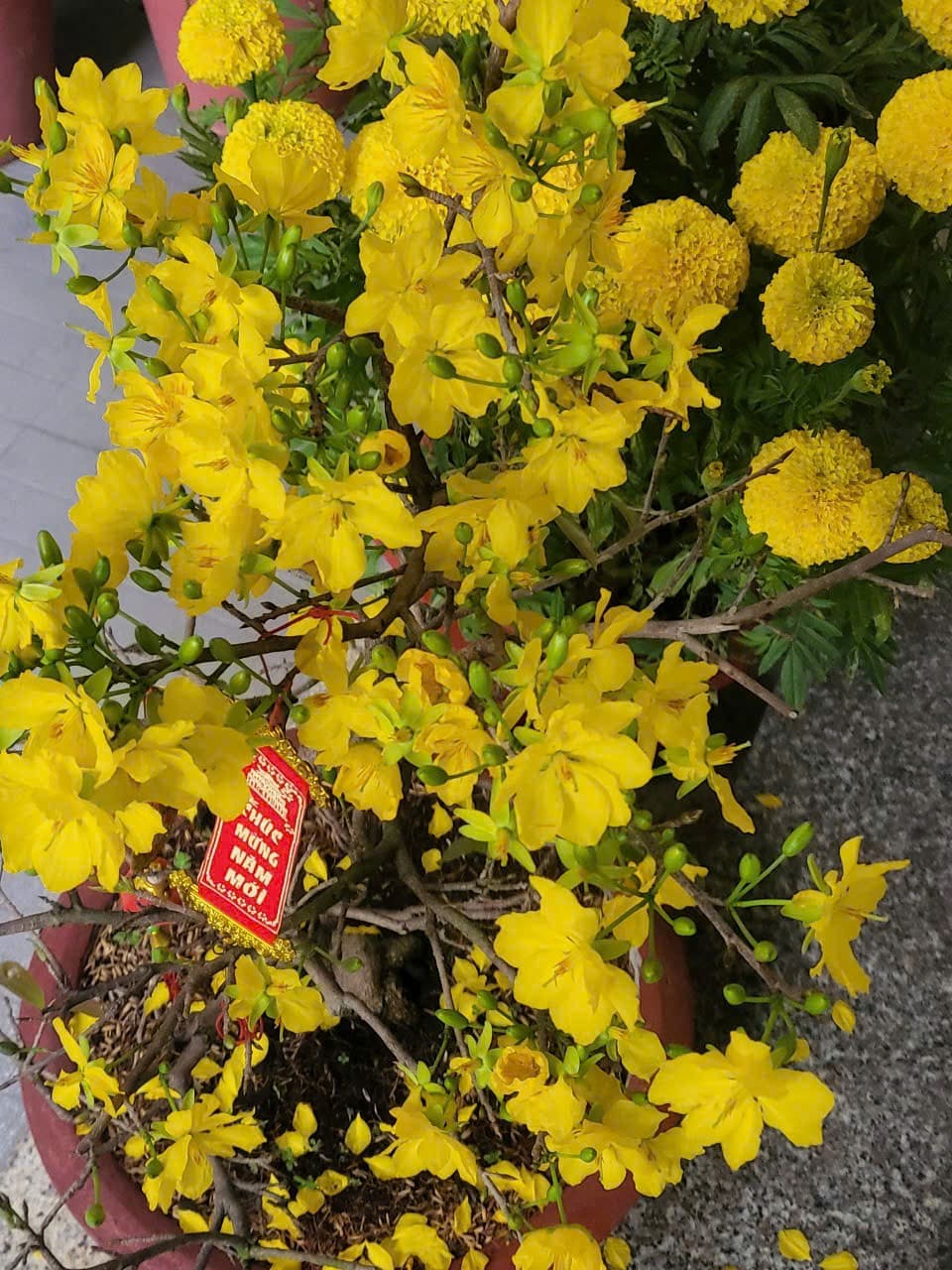 Ảnh : hoa hai cây mai … nói đó. Mai năm trăm ngàn “mắc” hơn đã rộ bông …