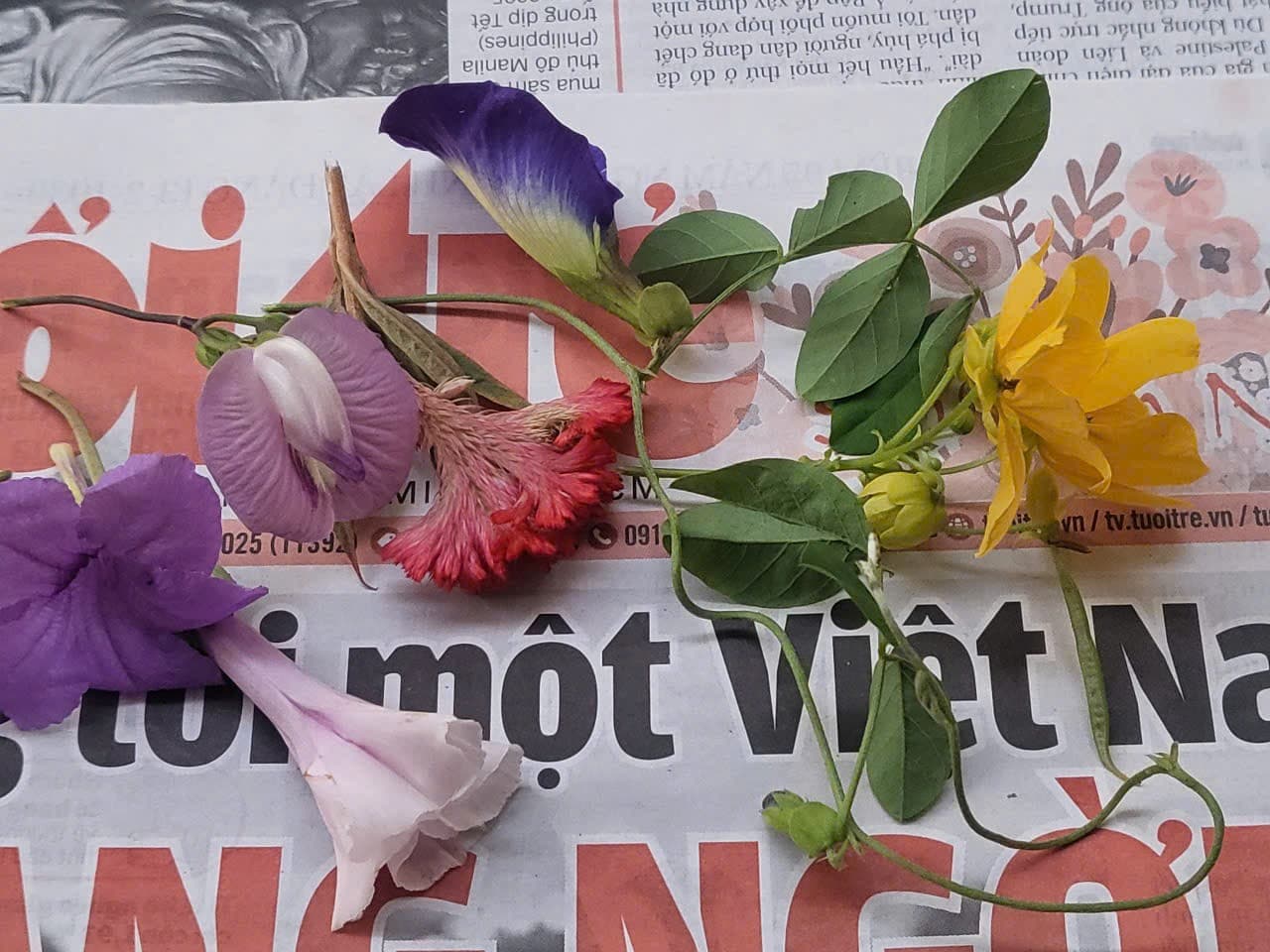 Sáng sớm M2 tết, NaK tui lọ mọ quét cái sân trước nhà. Chỉ là lá cây, bông giấy rơi trong đêm từ tầng hai xuống. Đến gốc mai, tự dưng lại ko gom/hốt luôn nhúm cánh và nhuỵ hoa mai …