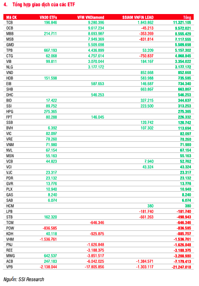 Tổng hợp giao dịch của các ETF trong đợt cơ cấu tháng 10 theo dự báo của SSI Research: