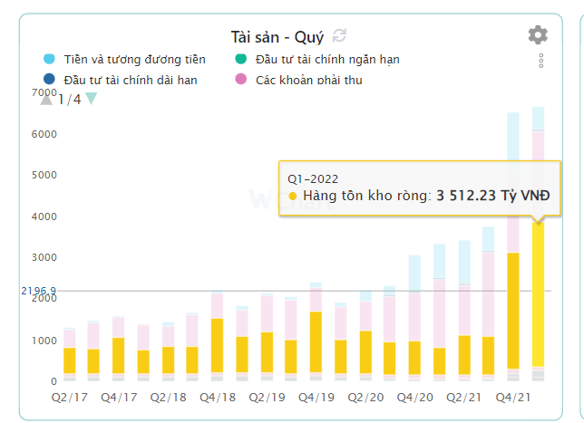 Luận điểm 1 : Gia tăng hàng tồn kho đạt con số kỷ lục trong quý 1 (3.512 Tỷ )