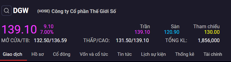 Vùng giá DGW đang giao dịch tính tới thời điểm hiện tại là 132.5 và giá mục tiêu cho DGW khi BCTC Q2 là 165 ( Về lại đỉnh cũ ) và khi hoàn thiện mở rộng các mặt hàng bán lẻ mới thì giúp cải thiện lợi nhuận có thể đưa DGW đạt 180 vào Q4 / 2022 .