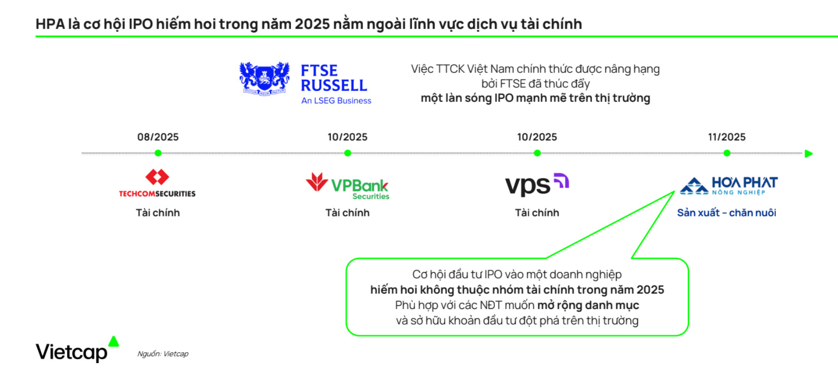 Năm 2026 dự kiến sẽ có thêm 1 trang trại mới sẽ đi vào hoạt động, điều này sẽ giúp DN tăng thêm 46,800 heo thương phẩm. Bên cạnh đó, HPA dự kiến nâng tổng công suất lên 900 nghìn con/ năm vào năm 2030 với tổng vốn đầu tư 1,000 tỷ đồng.