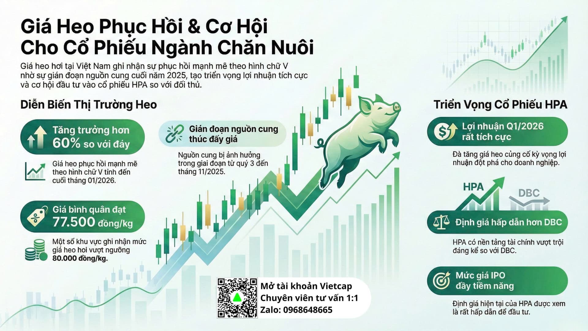 Kết luận: Với thiên thời từ giá heo tăng cao và vị thế nội tại vững vàng, HPA đang đứng trước cơ hội bứt phá mạnh mẽ ngay sau khi lên sàn.