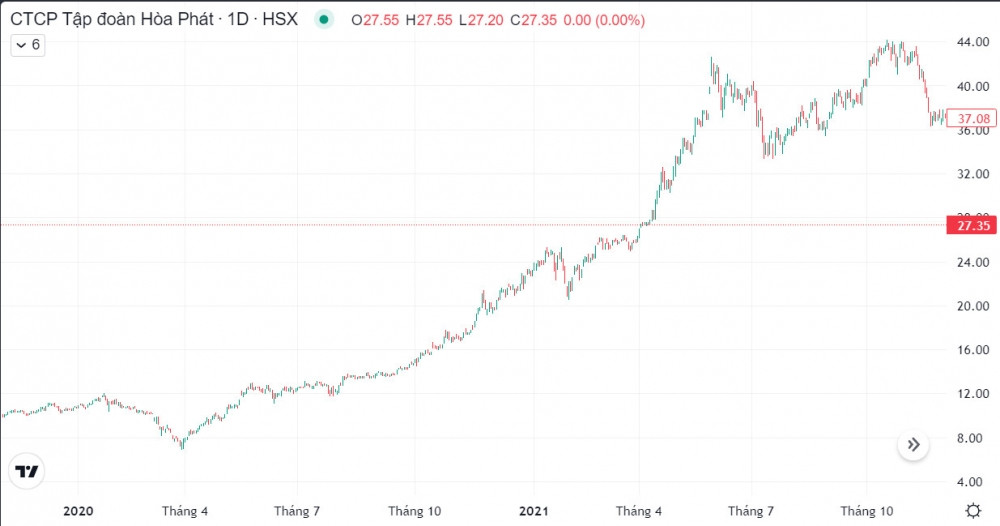 Trước đó, giai đoạn năm 2020-2021, Hòa Phát dần đưa vào vận hành Khu liên hợp sản xuất gang thép Hòa Phát Dung Quất 1, tổng vốn đầu tư 60.000 tỷ đồng, nâng công suất thép thô toàn tập đoàn lên 8,5 triệu tấn/năm, lớn nhất khu vực Đông Nam Á. Cổ phiếu HPG đã tăng 6 lần trong giai đoạn trên.