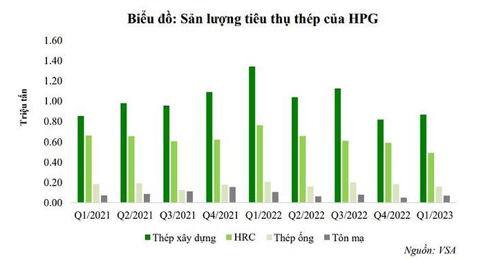 Trước bối cảnh sản lượng tiêu thụ thép xây dựng tiếp tục sụt giảm, giá bán thép bắt đầu giảm mạnh trong quý II có thể tạo áp lực trích lập dự phòng giảm giá hàng tồn kho lớn trong bối cảnh Hòa Phát đã cho hoạt động lại 1 lò cao, vì đó, VCBS cho rằng, kết quả kinh doanh của Hòa Phát trong quý II sẽ tiếp tục gặp nhiều khó khăn.