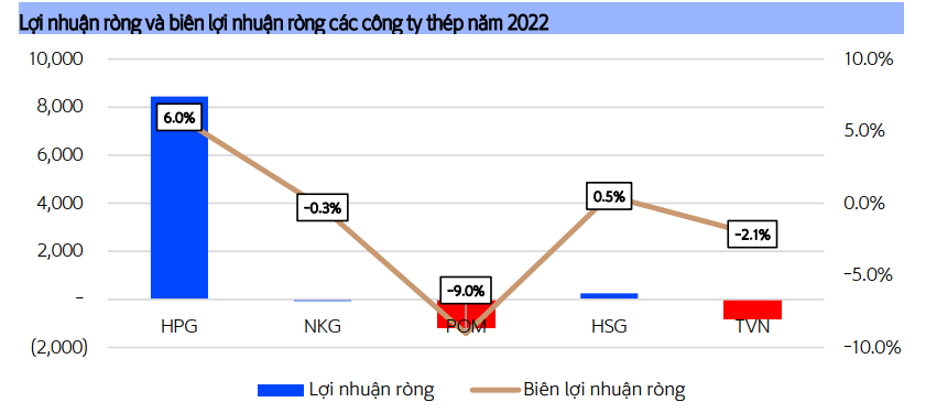 Qúy 4/2022, HPG bán hàng dưới giá vốn 3%. Tức giá bán chỉ bằng 97% giá thành sản xuất. Còn nếu để HPG kinh doanh hòa vốn thì riêng giá thép bình quân trong Q1/2023 phải tăng 12% so với Q4/2022, đó là giả thuyết nếu sản lượng bán ra Q1/2023 bằng Q4/2022