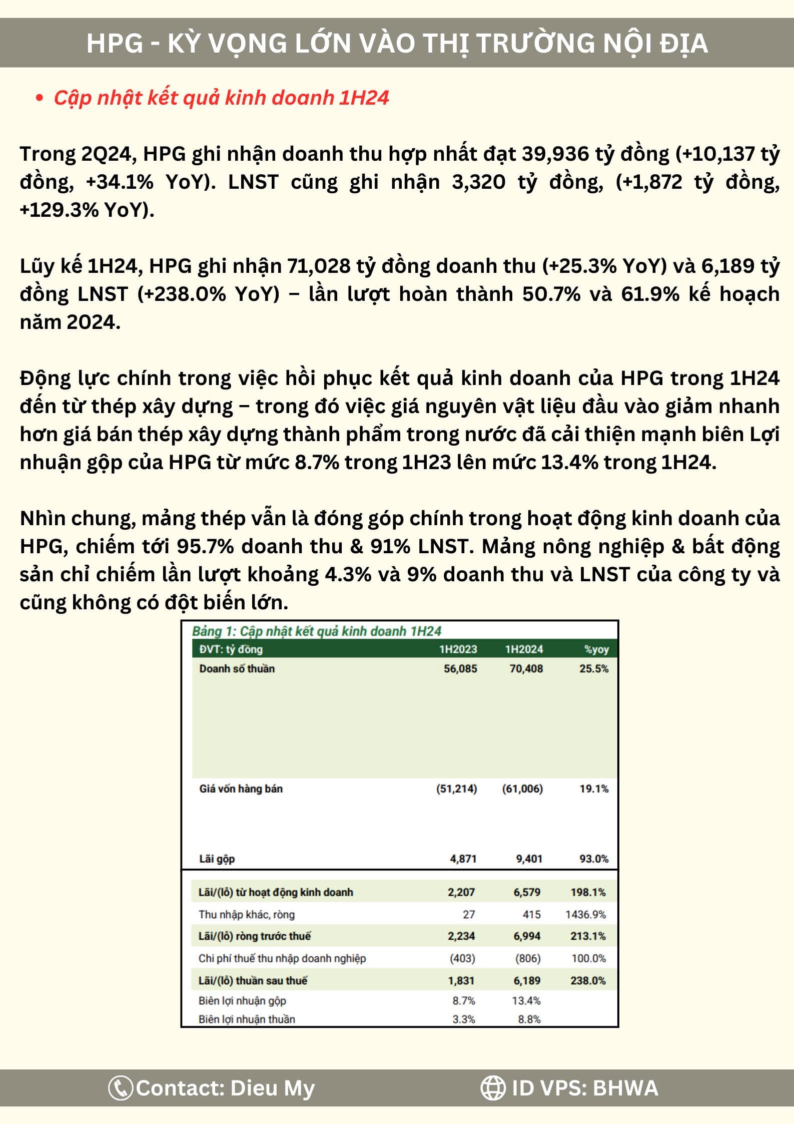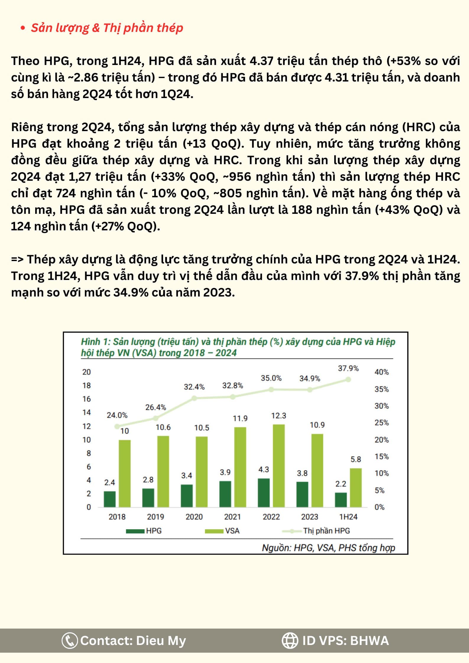 Biên lợi nhuận đã cải thiện mạnh trong 1H24, kỳ vọng tốc độ giảm giá nguyên vật liệu đầu vào sẽ chậm lại trong 2H24 (khi các nhà sản xuất thép Trung Quốc giảm được lượng hàng tồn kho) và sẽ không gây tác động quá lớn vào việc trích lập giảm giá hàng tồn kho của HPG.
