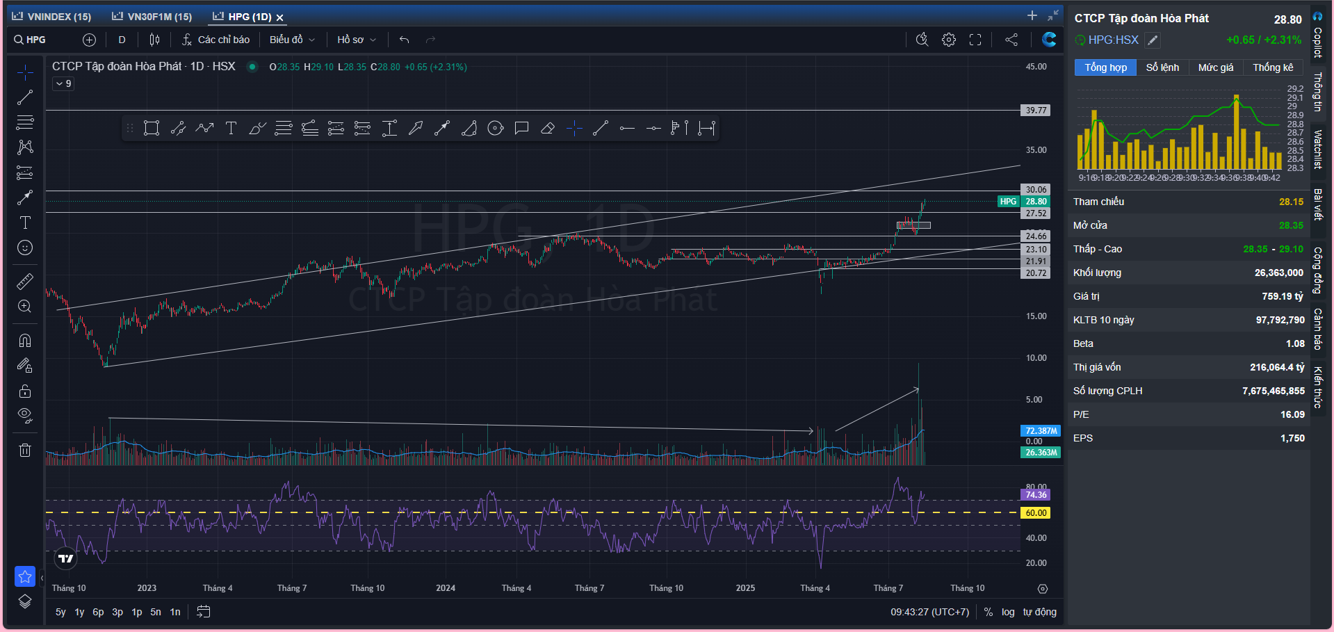 Hiện cổ đang trong phase D theo Wyckoff, liên tục sẽ có những vùng LPS cho chúng ta giải ngân.