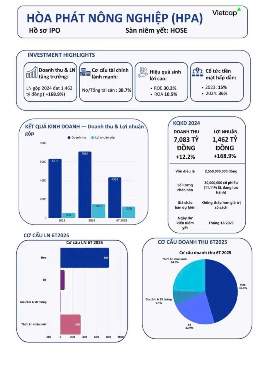 Theo kế hoạch, Nông nghiệp Hòa Phát sẽ niêm yết cổ phiếu lên sàn giao dịch chứng khoán TP. Hồ Chí Minh sớm nhất vào tháng 12.2025 với mã dự kiến là HPA.