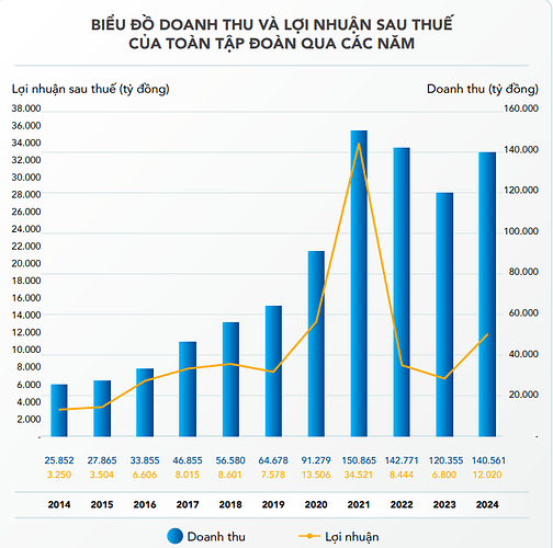HPG ghi nhận kết quả kinh doanh năm 2024 đầy khởi sắc với doanh thu thuần đạt 138,855 tỷ đồng và lợi nhuận sau thuế đạt 12,021 tỷ đồng, lần lượt tăng 16.7% và 76.8% svck. Kết quả kinh doanh của HPG năm 2024 cho thấy sự phục hồi mạnh mẽ sau vùng đáy của ngành thép năm 2023, theo đà phục hồi của nhu cầu trên thị trường. Kết quả kinh doanh sơ bộ quý 1/2025 khả quan, doanh thu đạt 37,000 tỷ đồng, LNST đạt 3,300 tỷ đồng, lần lượt tăng 19.9% và 15% so với quý 1/2024.