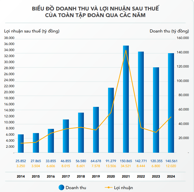 HPG đã đặt ra mục tiêu doanh thu kỷ lục là 170.000 tỷ đồng và lợi nhuận sau thuế (LNST) đạt 15.000 tỷ đồng. So với kết quả thực hiện trong năm 2024, các mục tiêu này lần lượt tăng 20,9% và 24,8%.
