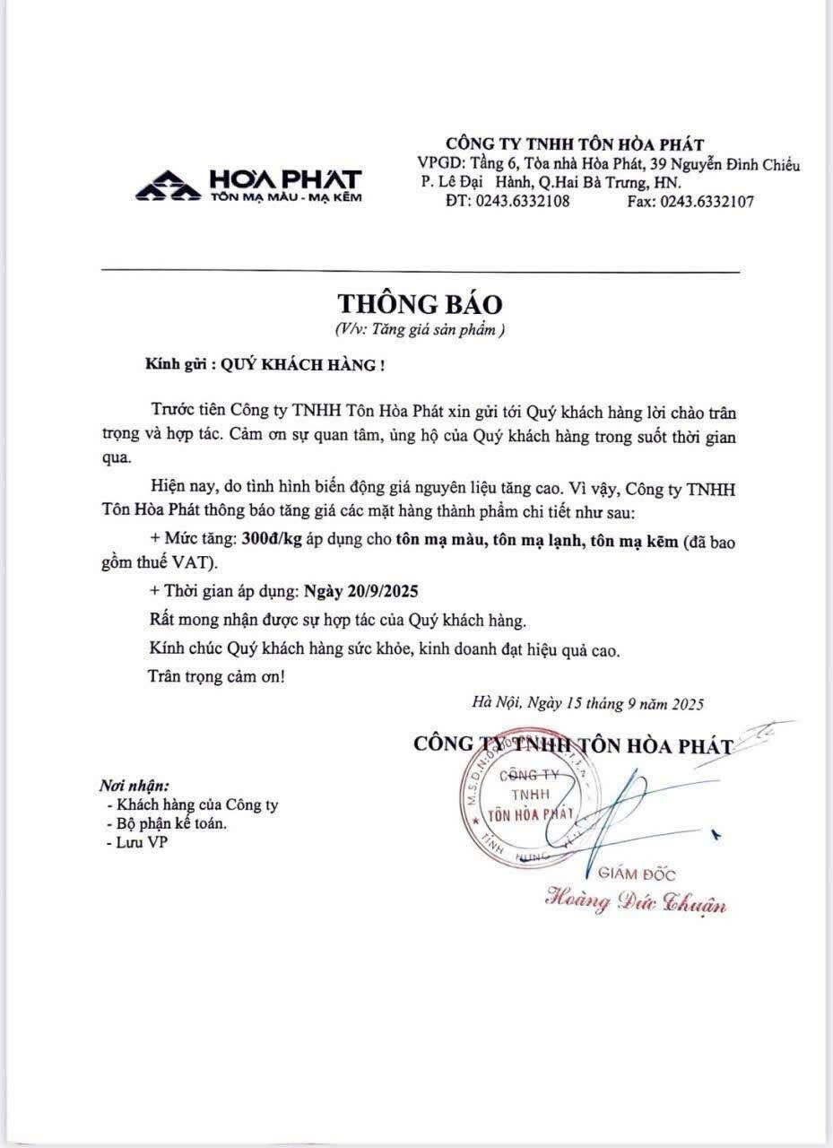 Như FM Fund đã đưa tin, HPG mới đây đã thông báo tăng 2% giá bán HRC lên 526 USD/tấn. Tuy nhiên, đơn hàng gần như đã có đủ cho đến tháng 11/2025. Một số nguồn tin cho biết HPG có thể không còn áp dụng khoản chiết khấu thông thường 10 USD/tấn cho đơn hàng lớn 20,000 tấn.