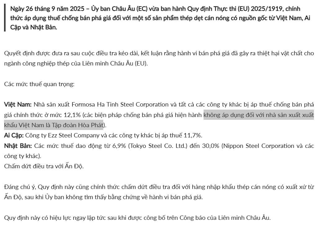 Hòa Phát và Formosa Hà Tĩnh dự kiến sẽ nộp đơn kiện chống bán phá giá đối với thép HRC Trung Quốc có khổ lớn hơn 1,880mm trong tháng 12/2025.