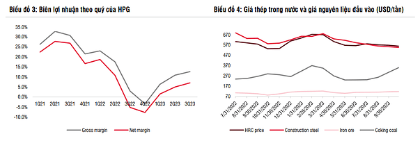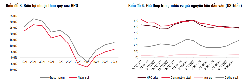 Biên lợi nhuận gộp của Hòa Phát cải thiện lên 12,6% trong quý 3/2023, so với 2,9% trong quý 3/2022 và 10,8% trong quý 2/2023.