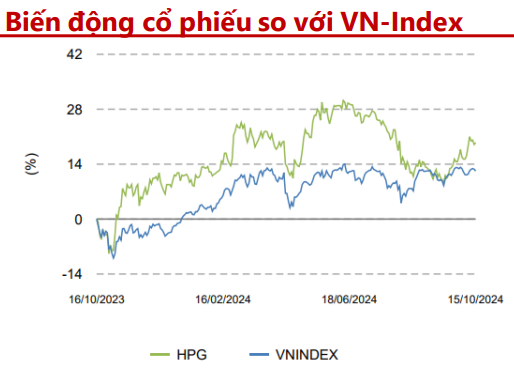 Biên lợi nhuận của HPG được cải thiện so với quý trước nhờ giá đầu vào giảm nhanh hơn giá bán ra. Cụ thể, giá quặng sắt giảm 11% và giá than cốc giảm 13%, trong khi giá bán thép chỉ giảm hơn 3%. Về tình hình tiêu thụ, trong Quý 3, sản lượng thép xây dựng đạt gần 1,1 triệu tấn, giảm 14%, và sản lượng thép HRC đạt 738 nghìn tấn, giữ nguyên so với quý trước. Lũy kế 9 tháng, sản lượng thép xây dựng tăng 29% svck và thép HRC tăng 14,4% svck.