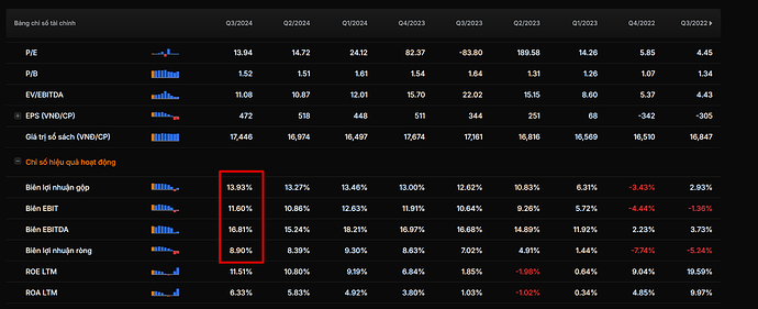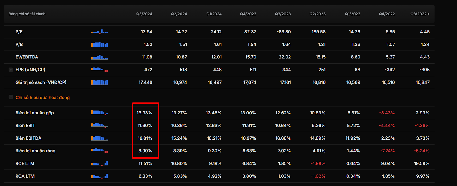 Biên lợi nhuận gộp và biên lợi nhuận ròng của doanh nghiệp lần lượt đạt 13.9% và 8.9%, cải thiện đáng kể so với cùng kỳ và Q2/2024.