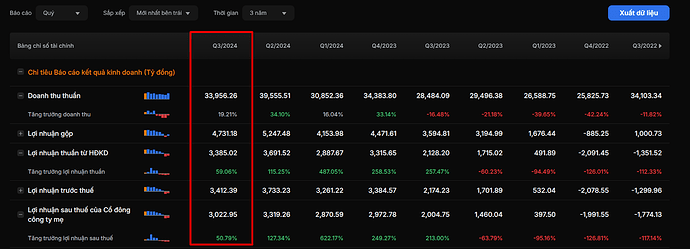 - Lợi nhuận sau thuế của cổ đông đạt 3 ngàn tỷ (+50% YoY và -10% QoQ)