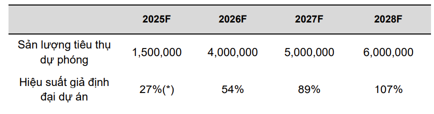 Dự báo sản lượng tiêu thụ của Dung Quất 2, nguồn: VCBS