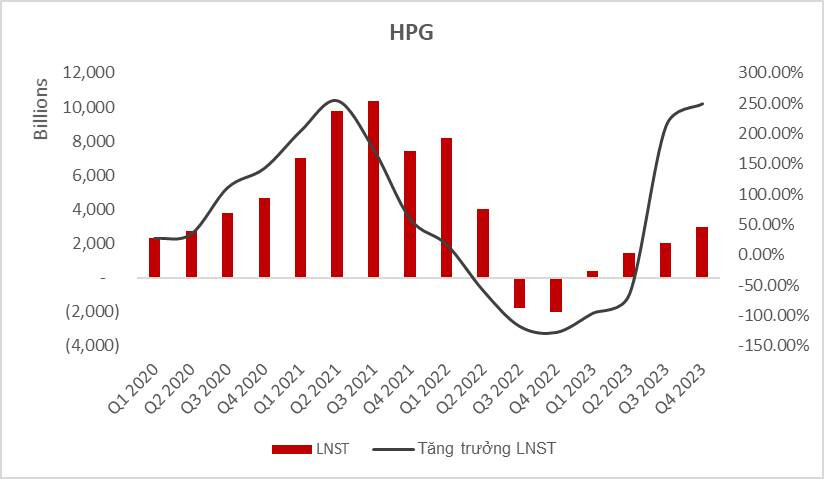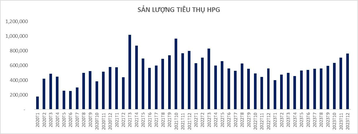 Đây là quý thứ 2 liên tiếp HPG có LNST tăng trưởng dương svck và là quý thứ 4 liên tiếp LNST tăng trưởng dương so với quý trước. Kết quả ấn tượng ghi nhận trong quý 4 được hỗ trợ bởi sự phục hồi mạnh mẽ của sản lượng tiêu thụ và việc DN đã tích cực giải phóng lượng hàng tồn kho giá cao ở các quý trước.