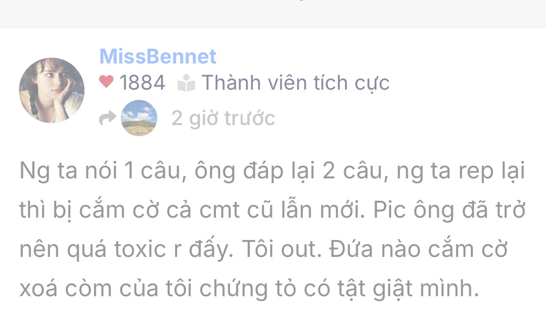 nguyên tắc của tôi là ko bình luận về cổ. Vì mời bác sang pic nên mới phá lệ có đôi lời nhận định. Thôi tôi out.