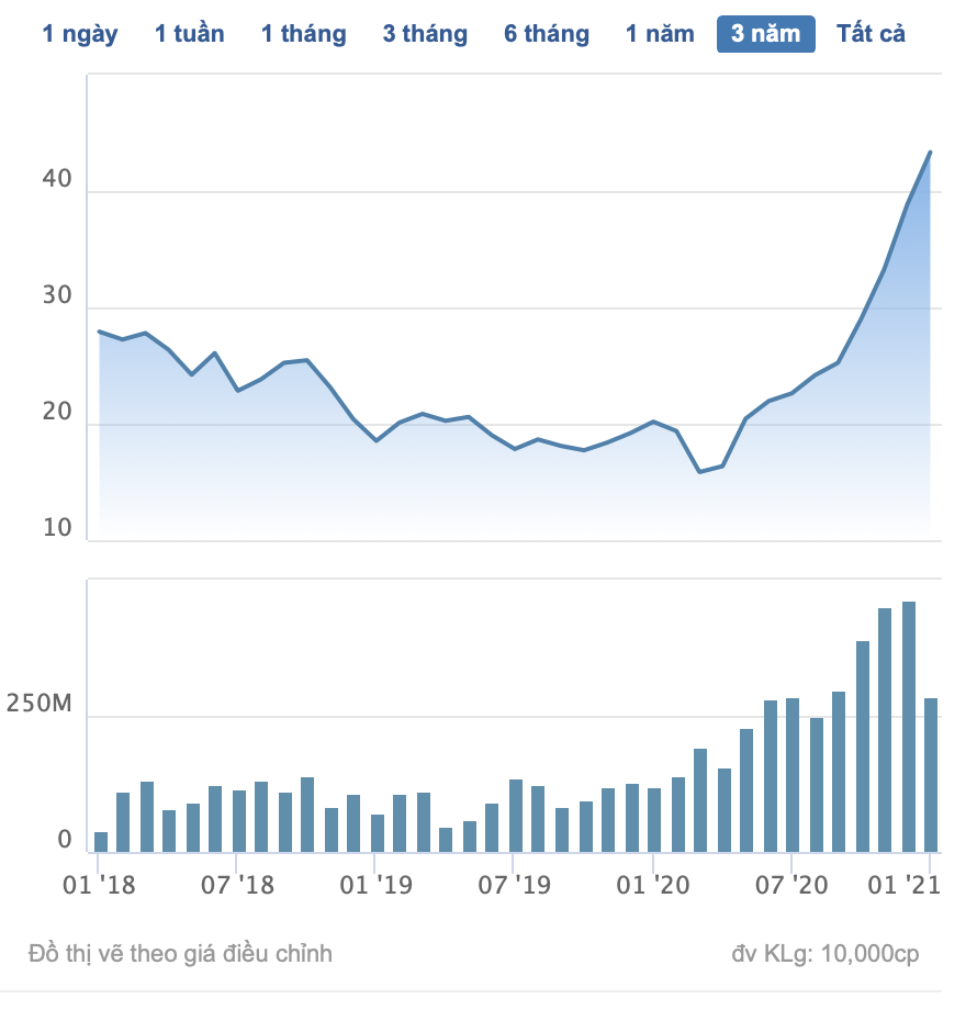 Giá cổ phiếu HPG 3 năm gần nhất