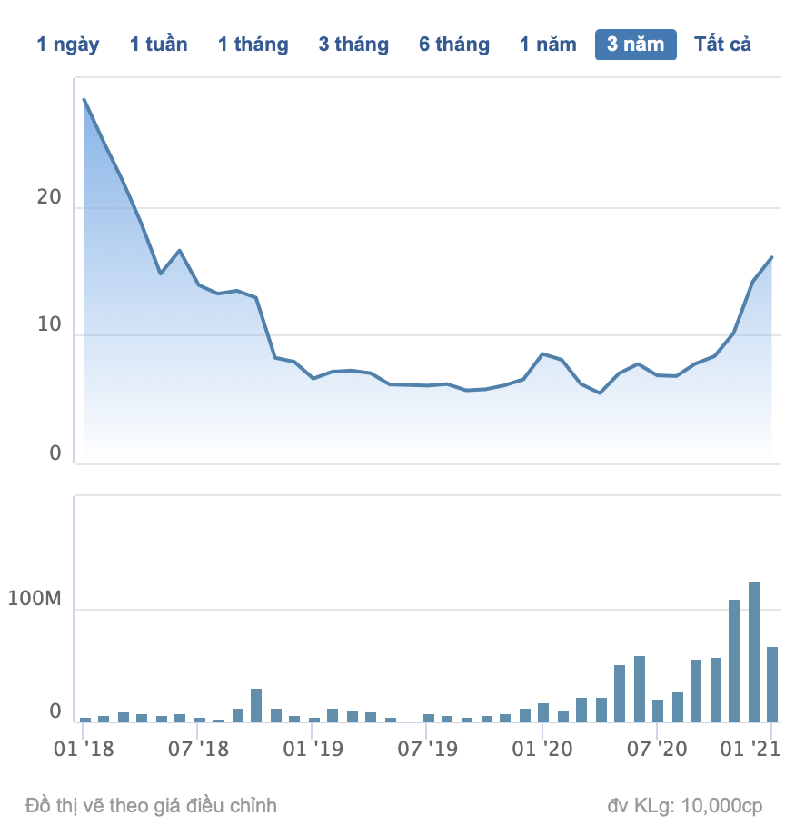 Giá cổ phiếu HSG 3 năm trở lại đây