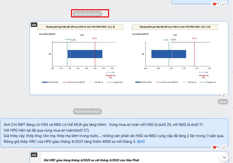 Cả HSG và NKG đã về lại mức giá trị sổ sách. Anh Chị NĐT quan tâm hạn chế mua đuổi những phiên cổ phiếu đang kéo mạnh