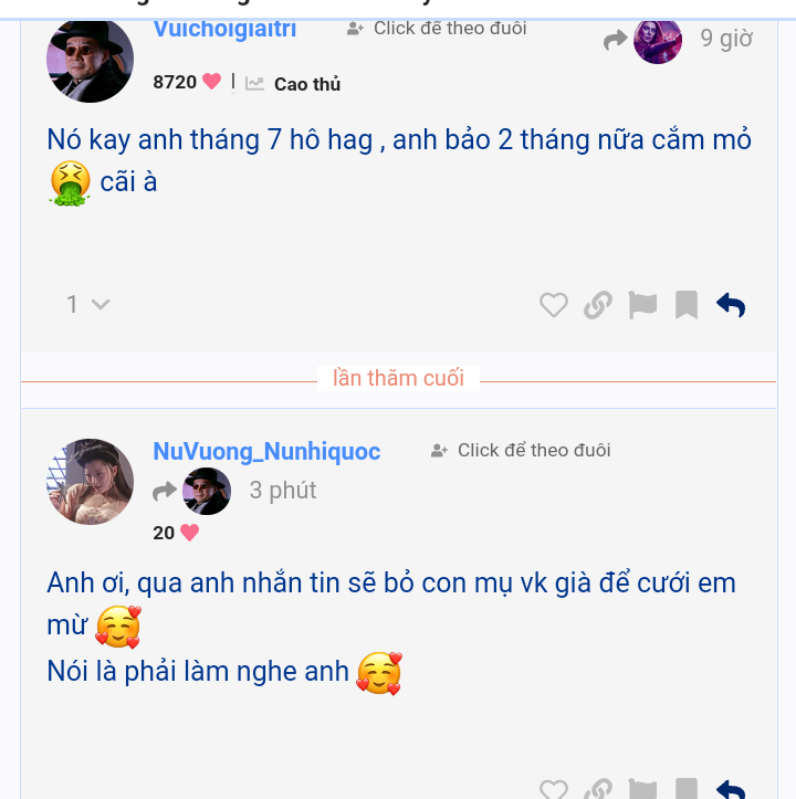 Quả thực e theo dõi thấy Chanh rất si tình với chị @NhamDoanhDoanh, ngay từ khi chị Doanh mới xuất hiện là Chanh đã mê Doanh ngay từ lần đầu, và vẫn vậy cho đến ngày hnay dù Doanh đã rất thẳng thắn từ chối Chanh, kkkk, khi mà mn còn chưa biết c D ntn thì C đã nhìn ra giá trị và nét đẹp của c ấy, quả thực C rất si tình… tặng Chanh bài hát này nhé, hihihihi, và e nghĩ là chị Doanh cũng có 1 tình cảm đặc biệt dành cho Chanh, k phải là tc mà chanh mong muốn nhưng e nghĩ là c ấy cũng quý Chanh theo cách của chị ấy.