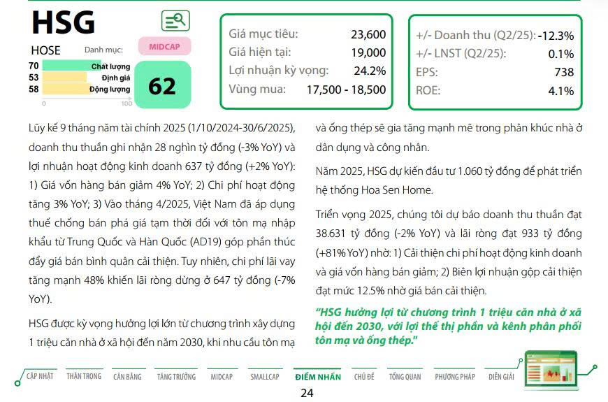 Cả niên độ 2024–2025, HSG đạt doanh thu thuần 36.539 tỷ đồng (-7% YoY) – phù hợp với dự phóng.