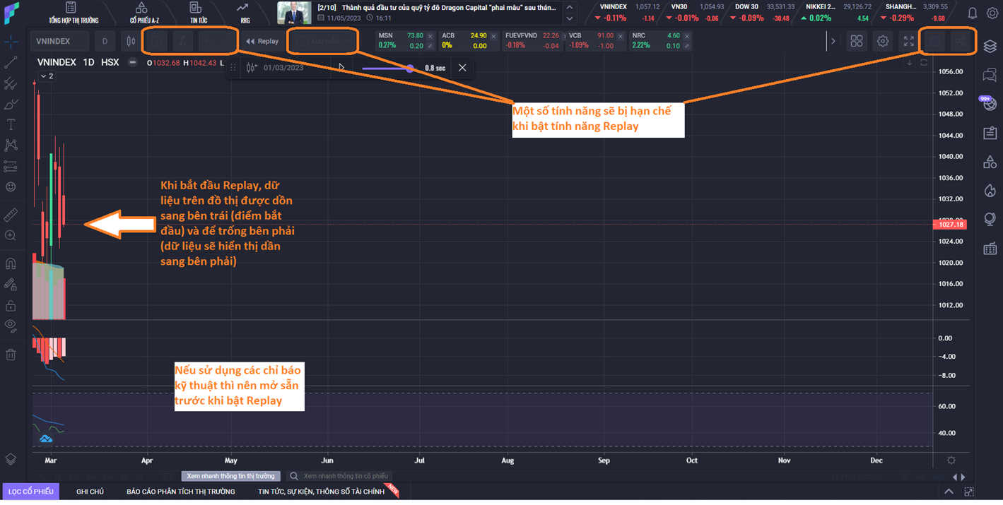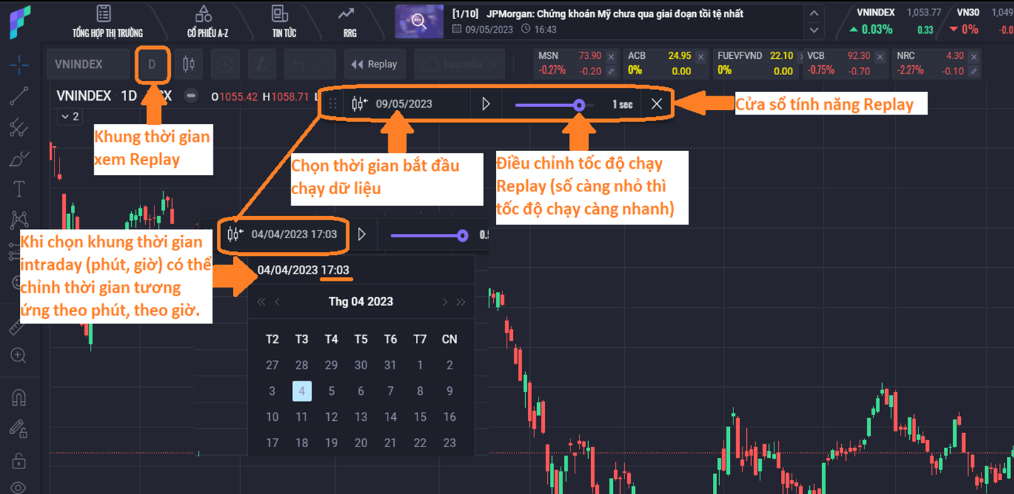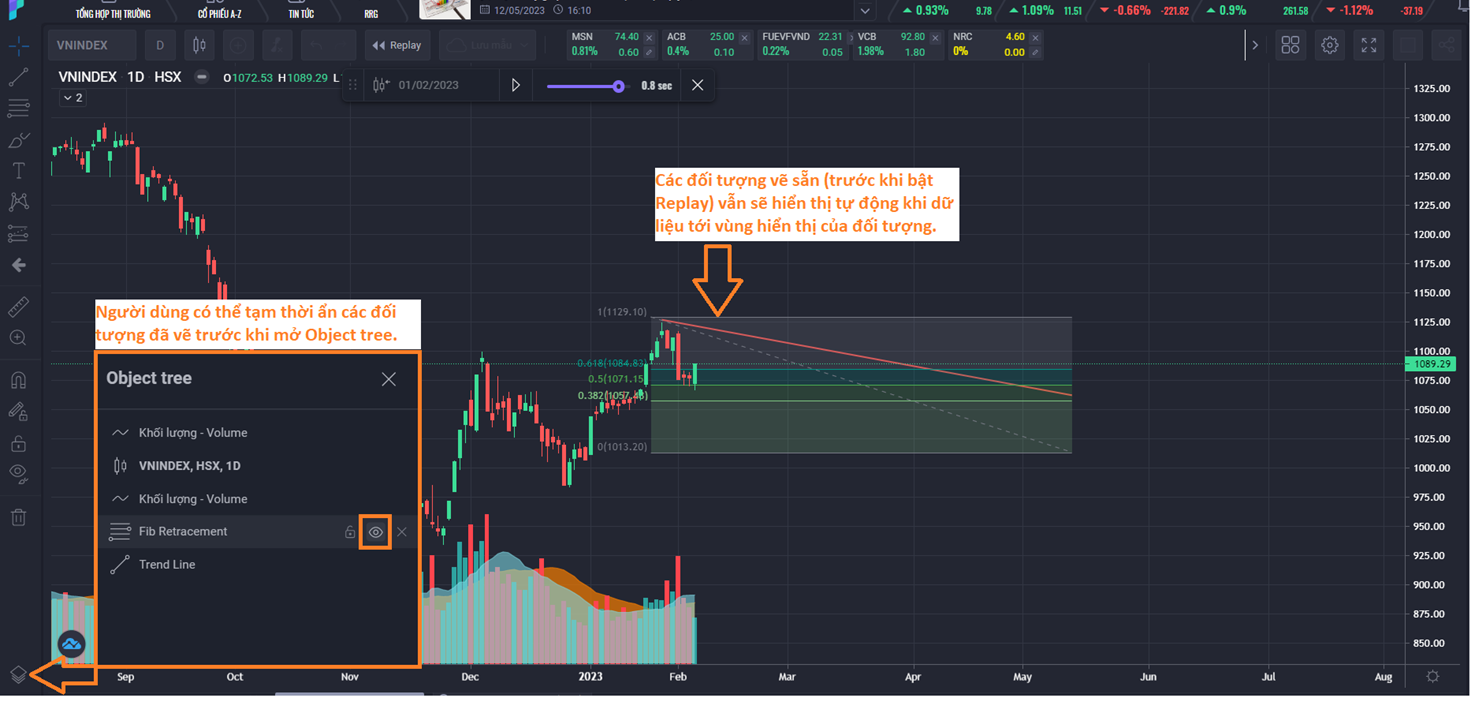 Ngoài ra chúng ta có thể theo dõi chi tiết cổ phiếu tác động ngay trên màn hình chỉ cần đưa con trỏ chuột đến phần mã cổ phiếu cụ thể như sau: