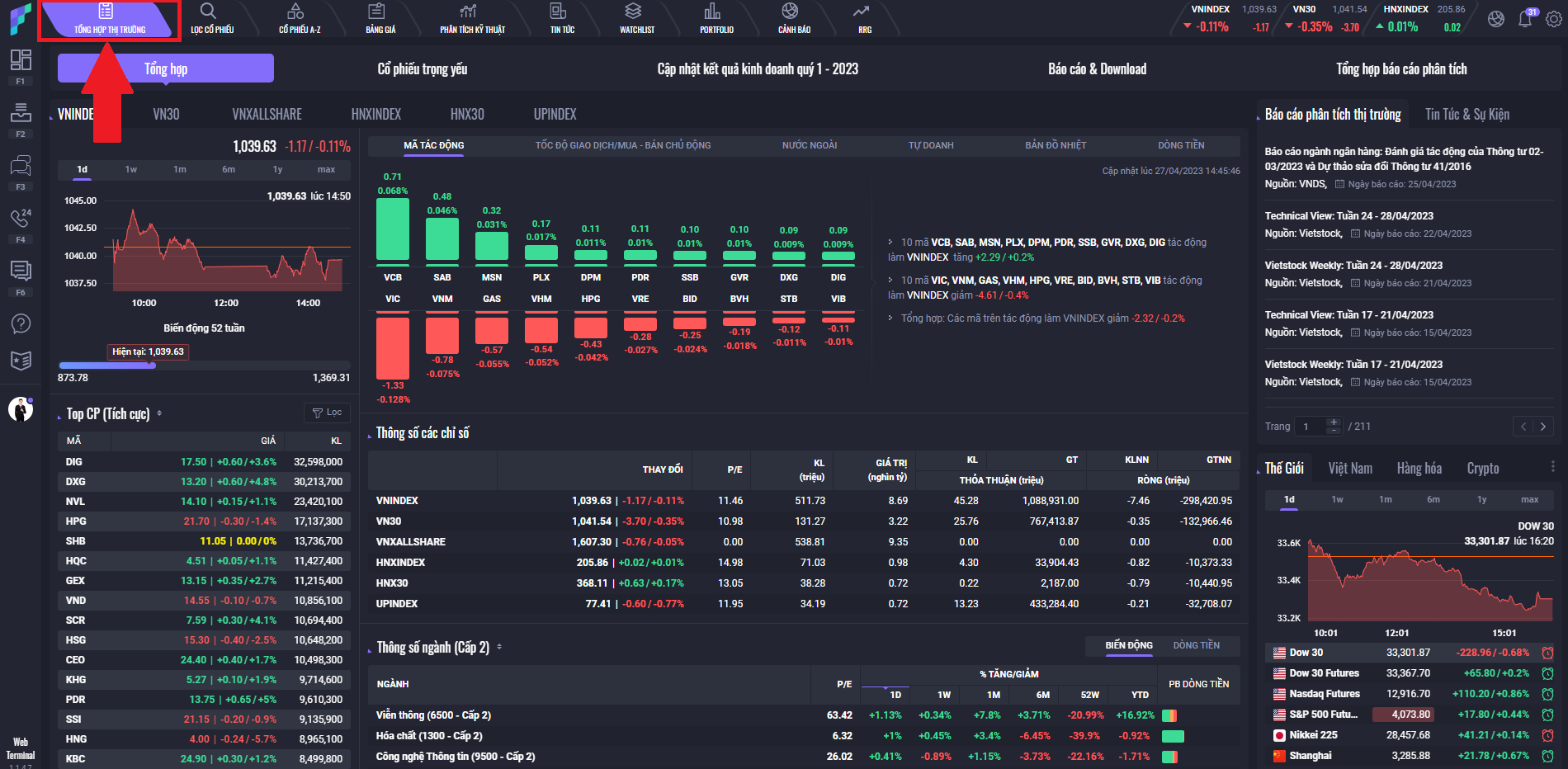 Đầu tiên tại màn hình trang chủ của Fialda bạn chọn vào mục thổng hợp thị trường![]