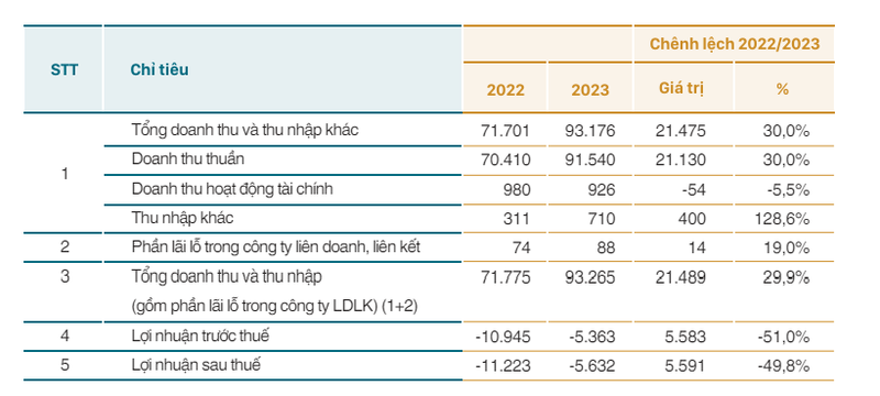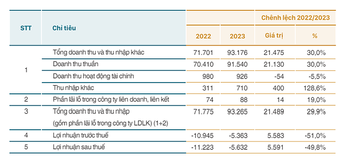 Mặc dù doanh thu tăng trưởng, Vietnam Airlines vẫn lỗ trước thuế hợp nhất 5.363 tỷ đồng và lỗ sau thuế hợp nhất 5.632 tỷ đồng. Tuy nhiên, mức lỗ này đã giảm so với năm 2022 gần 50%, cho thấy nỗ lực của hãng trong việc kiểm soát chi phí và cải thiện hiệu quả hoạt động.
