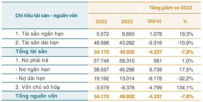 Qui mô vốn chủ sở hữu công ty mẹ tại ngày 31/12/2023 là -8.378 tỷ đồng, giảm 4.799 tỷ đồng so với cùng kỳ do khoản lỗ phát sinh trong năm 2023.