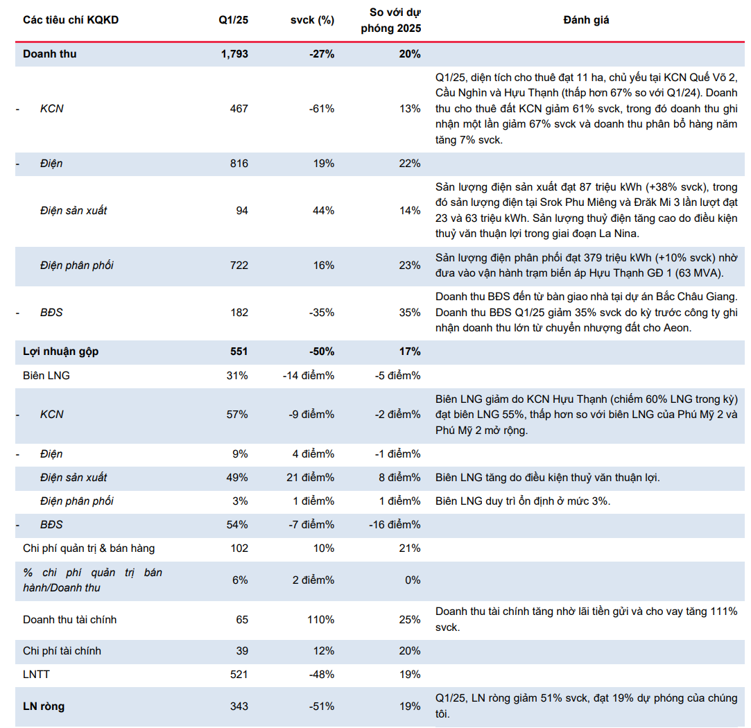Q1/25 doanh thu và LN ròng lần lượt giảm 27% và 51% svck