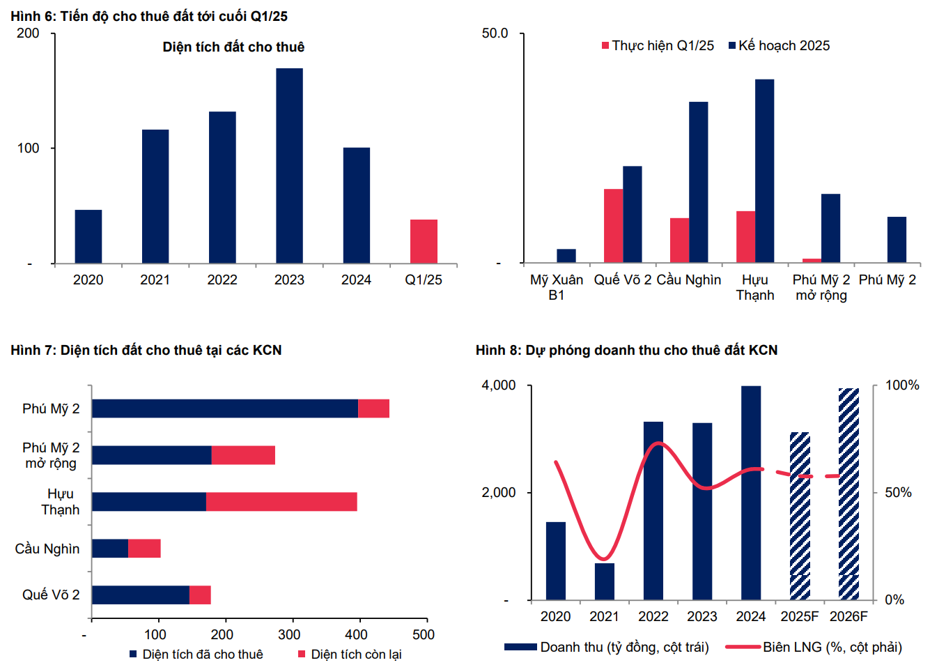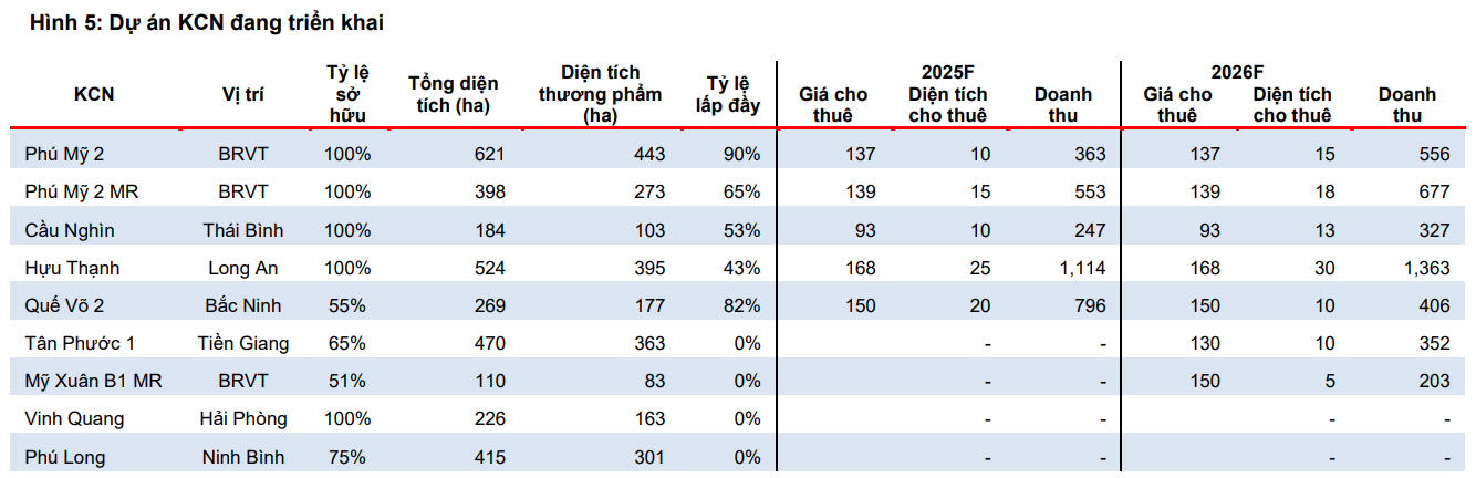 Trong nửa đầu năm 2025, công ty đã nhận được chấp thuận chủ trương đầu tư cho hai dự án KCN mới là Vinh Quang (226 ha) và Phú Long (415 ha). Công ty đang hoàn thiện hồ sơ pháp lý và tiến hành GPMB, kỳ vọng hai KCN mới này sẽ đem lại dòng tiền từ năm 2027.