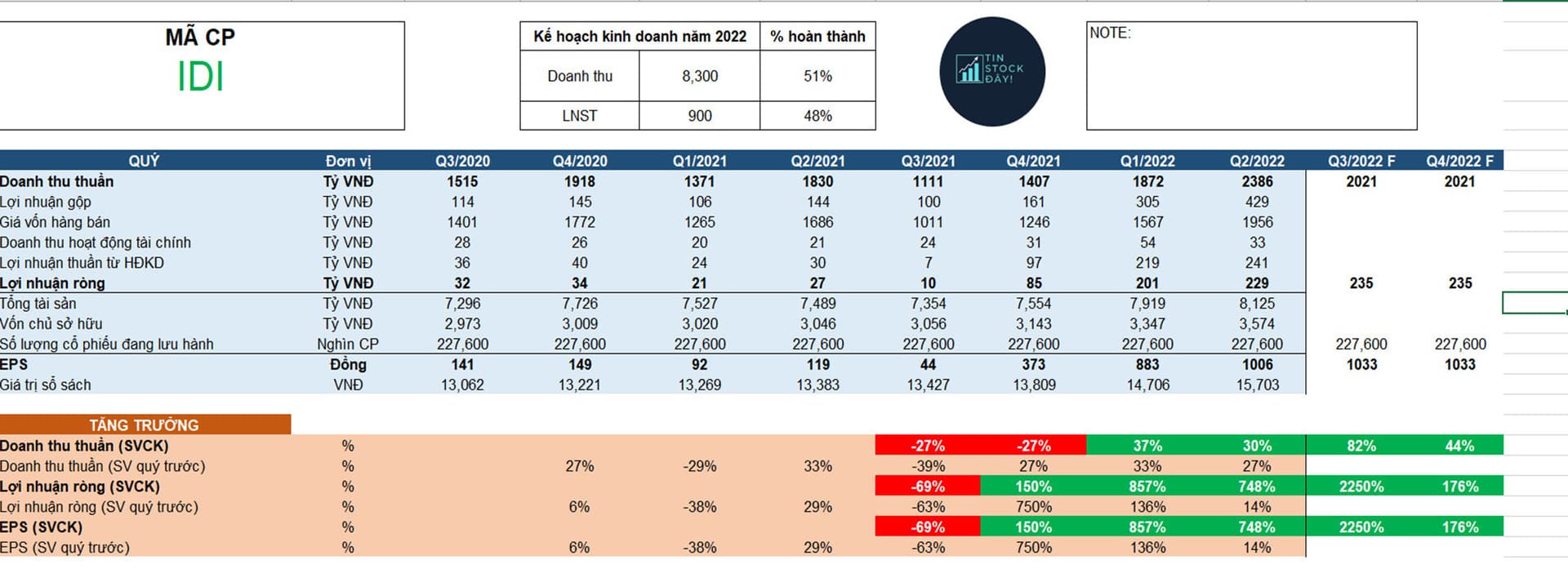 => Dựa trên nhưng thông tin cũng như đánh giá số liệu theo tiêu chuẩn TFA thì IDI có tiềm năng để tham gia đầu tư trong giai đoạn cuối năm.