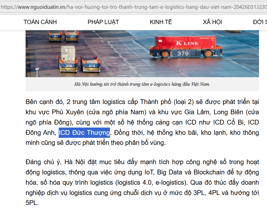 ICD Mỹ Đình, còn gọi là ICD Đức Thượng - 18ha của ILS. Điều tôi thích nhất với ILS chính là core business của ILS - là ông vua trong lĩnh vực cảng cạn ICD, với các cảng ICD nằm trong chiến lược phát triển e-logistics của thành phố Hà nội. Nên, nếu chỉ nhìn game mà lướt lát vài phiên, thì mọi người đều chỉ như 1 kẻ ăn trộm, ăn vụng. Cố gắng nhìn những case kinh điển như VVS TIN để xem ILS trong 1 năm tới có phải là siêu cổ dựa trên chính hoạt động cốt lõi của doanh nghiệp hay không?