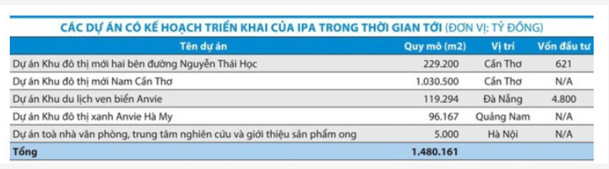- Bên cạnh đó, IPA còn sở hữu nhiều dự án của công ty con và công ty liên kết: CTCP du lich Hội An, Công ty Ong trung ương, Công ty TNHH Bất Động Sản Anvie…