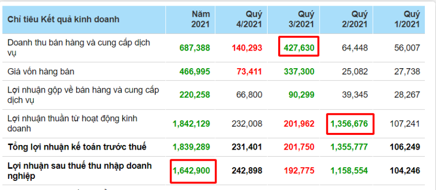 Tăng trưởng doanh thu được thúc đẩy bởi doanh thu của nhà máy Nậm Phàng B khi nhà máy chính thức đi vào hoạt động từ quý IV/2020, trong khi đó lợi nhuận được thúc đẩy bởi doanh thu hoạt động tài chính ghi nhận đạt 1.337 tỷ đồng nhờ chuyển nhượng vốn tại công ty con và cổ tức nhận được từ các khoản đầu tư dài hạn.