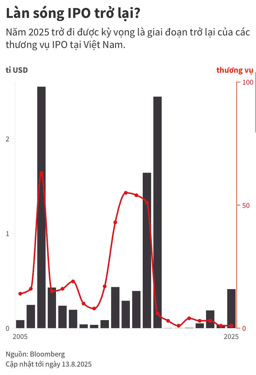 Thị trường chứng khoán Việt Nam đang rục rịch đón nhận một làn sóng IPO mới – đủ lớn để gợi nhớ lại những cột mốc vàng son 2007–2008 hay 2015–2017, khi hàng loạt doanh nghiệp tên tuổi xuất hiện đã góp phần đưa VN-Index chạm những đỉnh cao lịch sử.