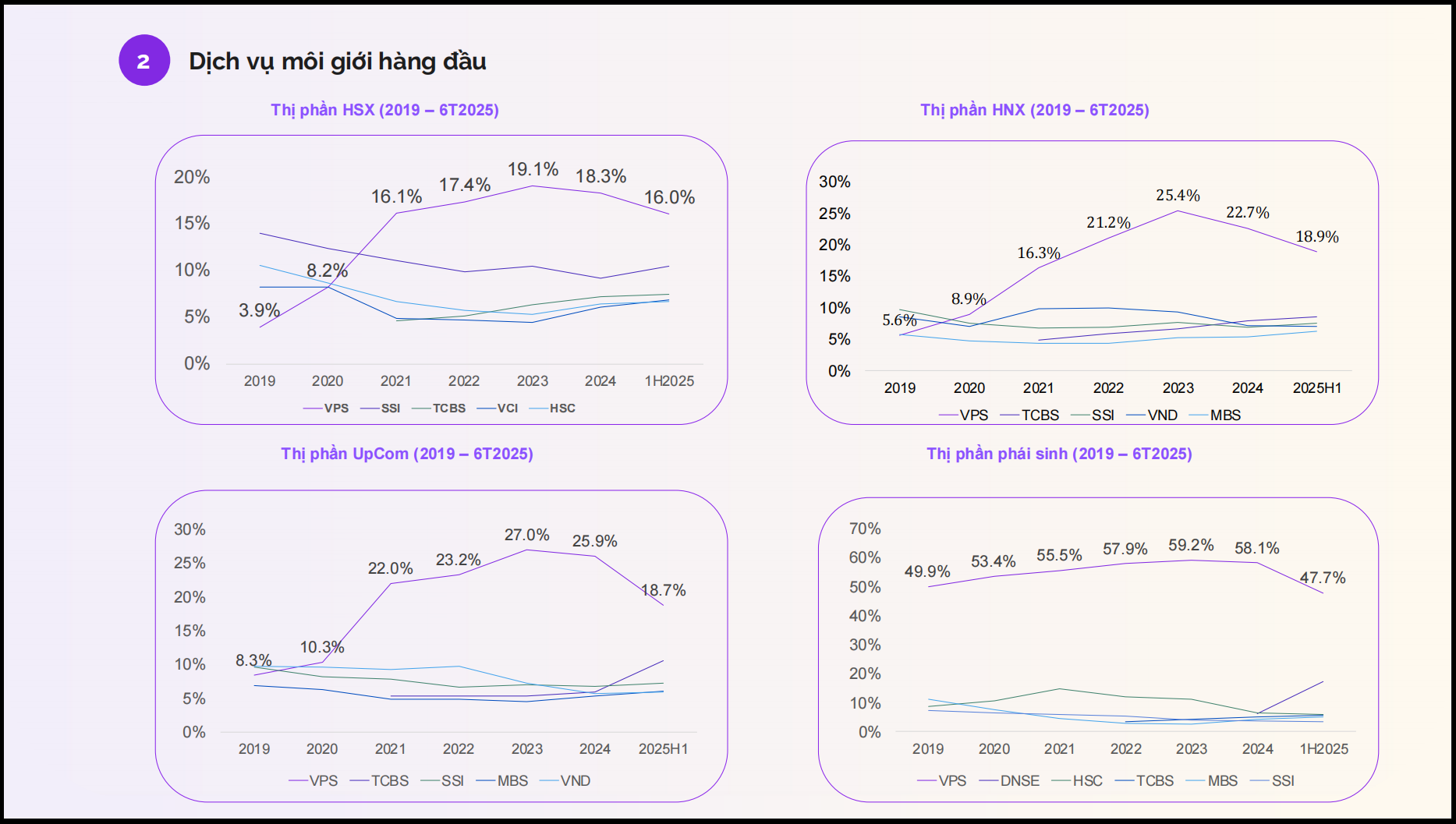 Giai đoạn 2025–2030, VNDirect cho rằng nhiều công ty như LPBS, ACBS, HDBS có thể tiếp tục lên kế hoạch IPO nhằm đáp ứng nhu cầu vốn, giảm phụ thuộc ngân hàng mẹ và đón đầu cơ hội nâng hạng từ MSCI. Sự hậu thuẫn về vốn, chi phí tài chính và nguồn khách hàng lớn từ ngân hàng mẹ giúp nhóm này có lợi thế rõ rệt, đặc biệt trong mảng môi giới.