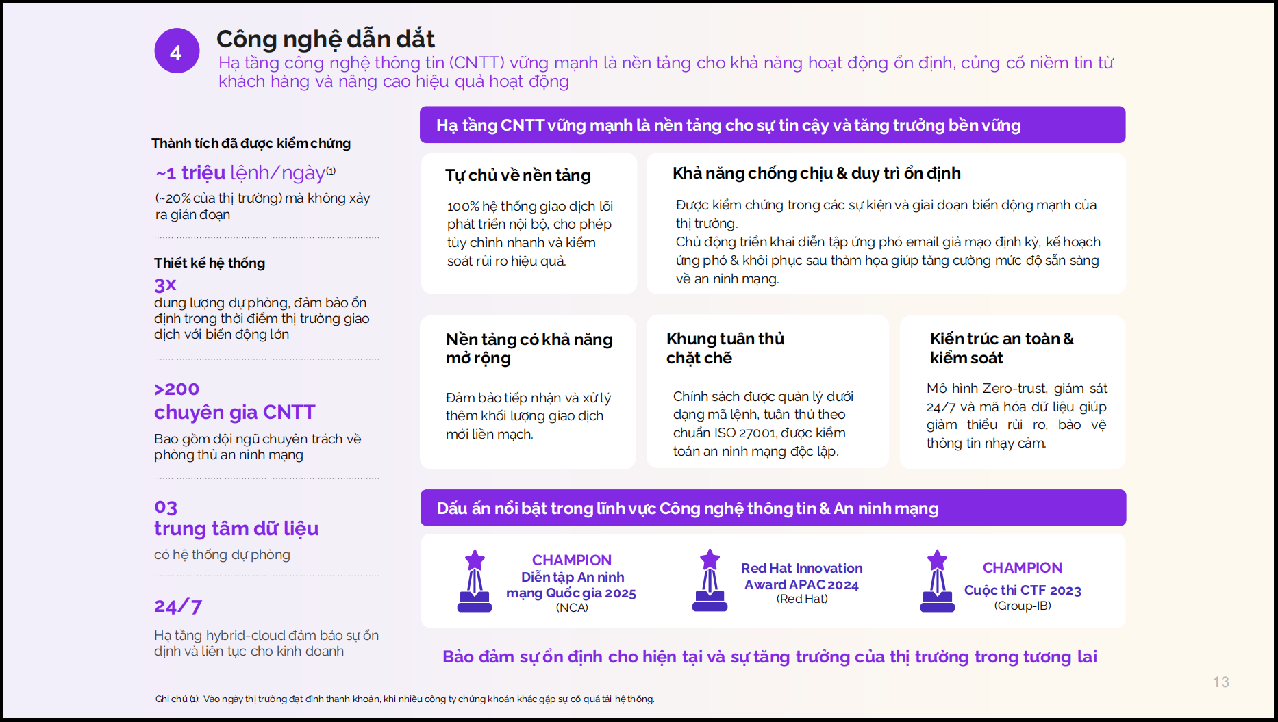 VNDirect đánh giá, nhóm công ty có nền tảng vốn mạnh, đầu tư bài bản vào công nghệ, trí tuệ nhân tạo (AI) và mô hình Open Finance sẽ tiếp tục giữ lợi thế cạnh tranh. Ngược lại, các CTCK nhỏ, yếu về vốn và thị phần có thể bị đào thải, mở ra khả năng xuất hiện các thương vụ M&A trong ngành.