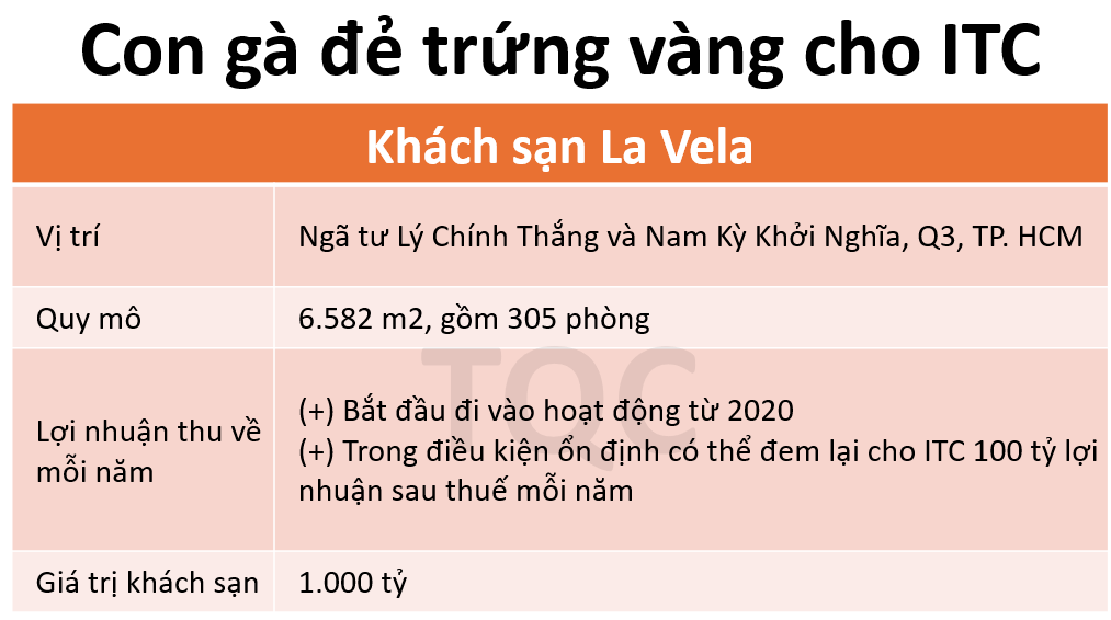 Hiện nay, khách sạn La Vela đang là con gà đẻ trứng vàng cho ITC. Trong một điều kiện ổn định, khách sạn La Vela có thể đem lại cho ITC dòng tiền ổn định khoảng 100 tỷ lợi nhuận sau thuế mỗi năm. Sở Du lịch TP. HCM đã đánh giá La Vela là khách sạn số 1 tại TP. HCM về tỷ lệ đặt phòng. Khách sạn này luôn trong tình trạng tỷ lệ đặt phòng trên 95%, và sẽ đạt 100% vào những dịp cuối năm.
