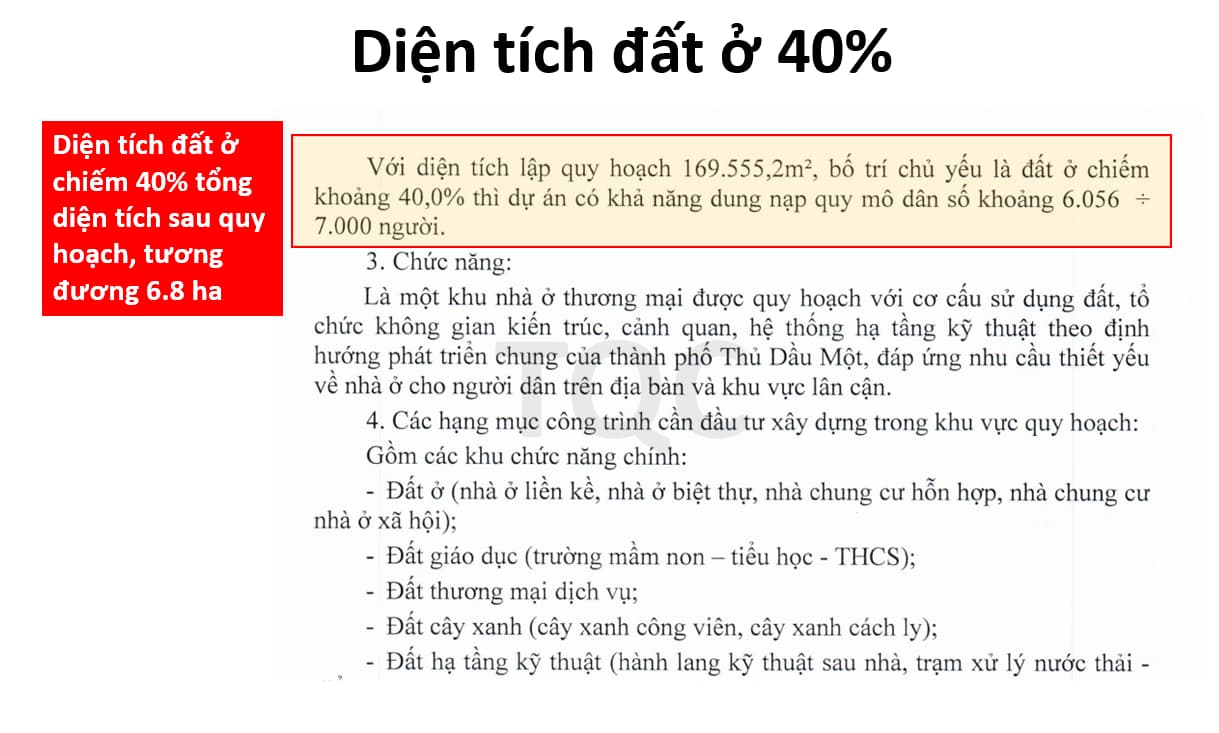 Diện tích đất ở chiếm 40% tổng diện tích sau quy hoạch, tương đương 6.8 ha.