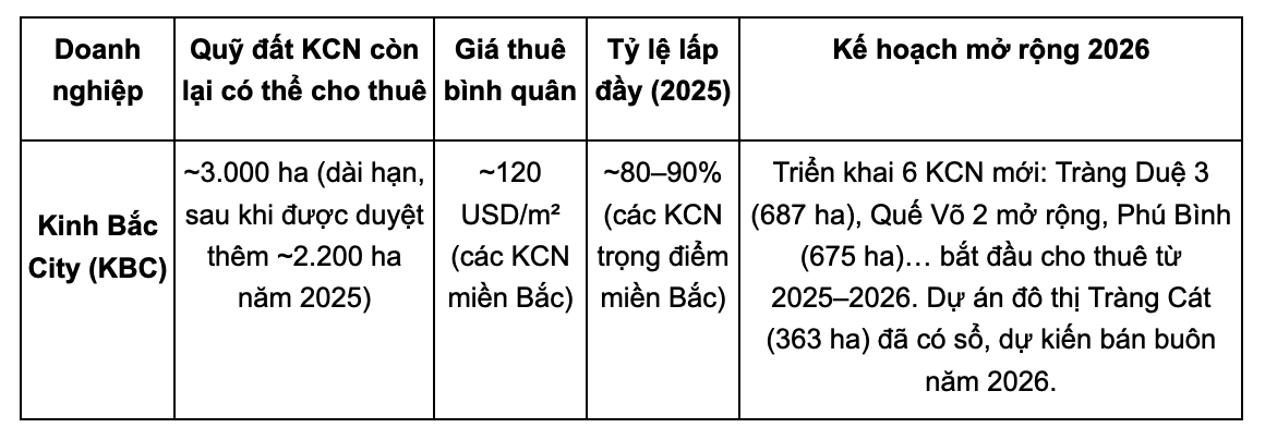 Tính đến cuối 11/2025, KBC đã ký cho thuê ~115 ha đất KCN nhưng chưa ghi nhận doanh thu – sẽ được ghi nhận dần trong 2026.