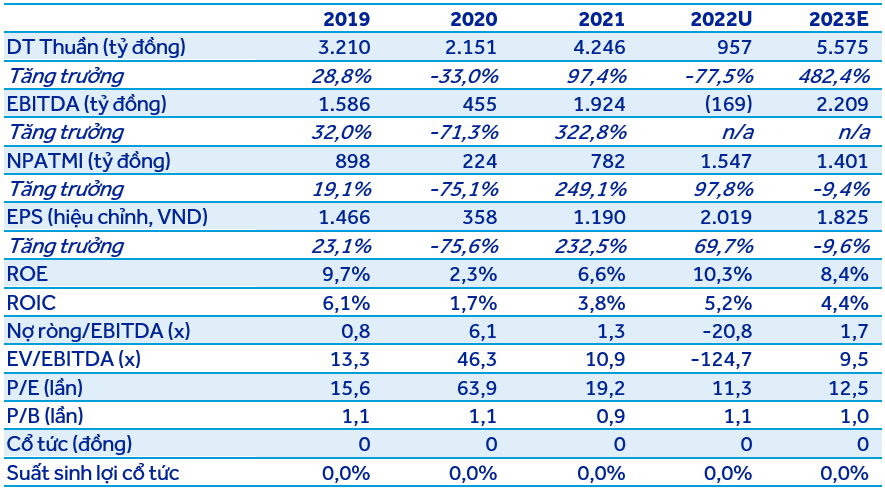Vào cuối năm 2022, KBC có số dư nợ ròng là 3.500 tỷ đồng, tăng hơn 1.000 tỷ đồng so với cuối năm 2021. Mặc dù tỷ lệ Nợ ròng/Vốn chủ sở hữu tăng từ 15,3% lên 19,7% nhưng chúng tôi cho rằng sức khỏe tài chính của công ty không phải là vấn đề đáng lo ngại ở thời điểm hiện tại do việc ký kết các hợp đồng cho thuê mới vẫn tích cực.