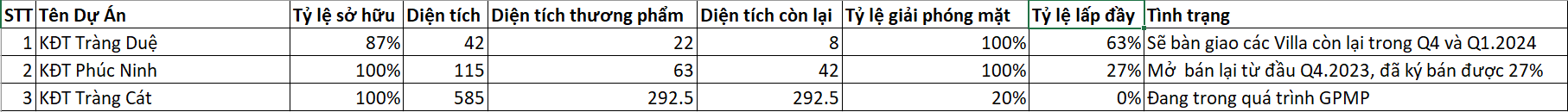 Đó là những dự án nào đang trong quá trình bán và những dự án đã có chủ trường đầu tư của công ty
