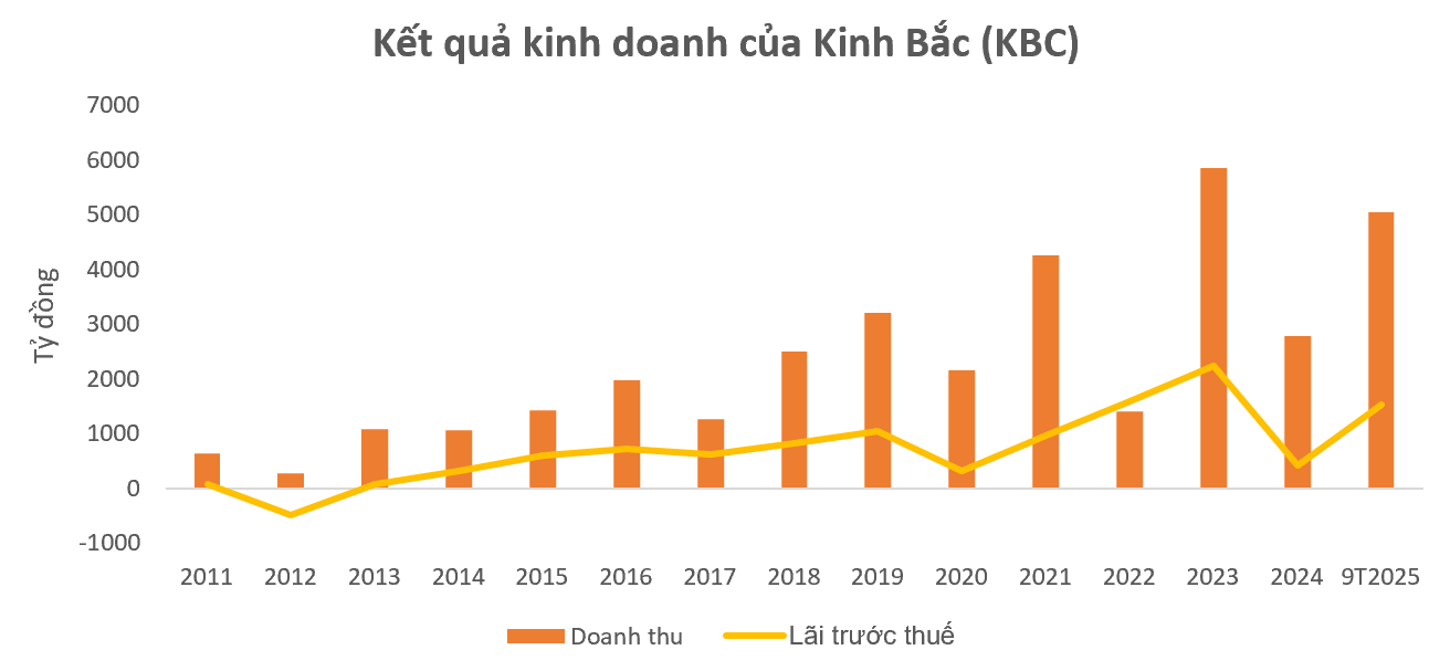 Dù gặp nhiều khó khăn trong năm 2024, Kinh Bắc cũng bật dậy với bức tranh có phần tươi sáng hơn của 9 tháng đầu năm 2025. Công ty mang về doanh thu thuần 5.038 tỷ đồng (tăng 153%), lợi nhuận sau thuế 1.562 tỷ đồng - nhờ ghi nhận doanh thu từ cho thuê đất và hạ tầng khu công nghiệp.