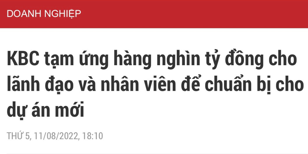 KBC TẠM ỨNG HÀNG NGHÌN TỶ ĐỒNG CHO LÃNH ĐẠO VÀ NHÂN VIÊN CHUẨN BỊ CHO DỰ ÁN MỚI? CÓ GÌ ĐÓ KHÁ GIỐNG VỚI ITA?