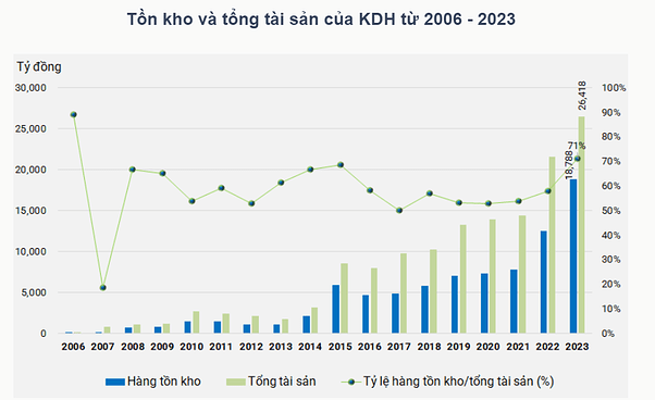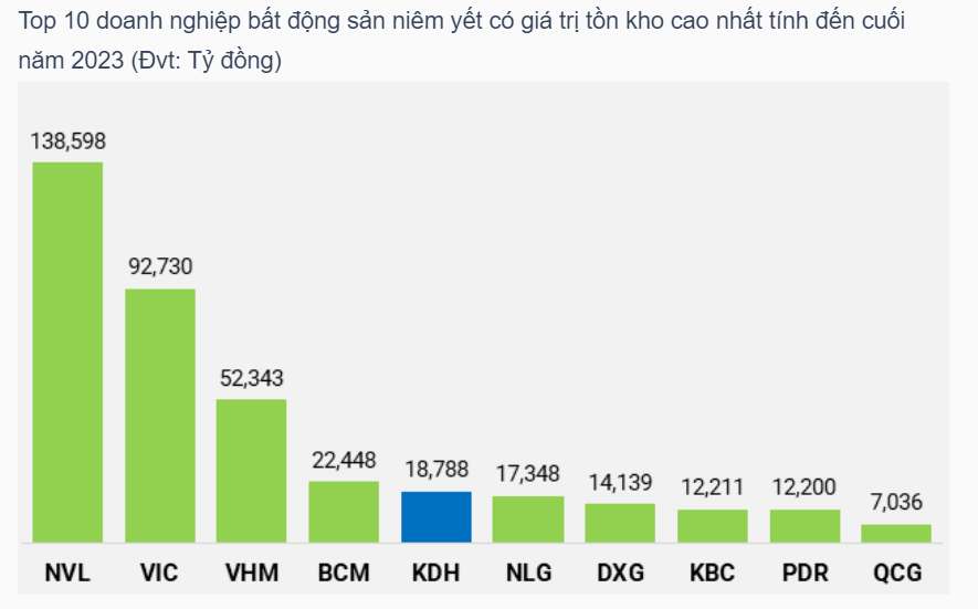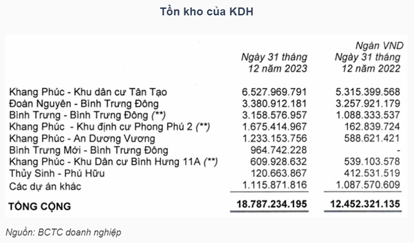 Dự án Khang phúc - Khu dân cư Tân Tạo (tên thương mại Mega Township). Đến cuối năm 2022, KDH cho hay dự án vẫn đang hoàn thiện pháp lý và giá trị tồn kho hiện đã gấp đôi vốn đầu tư ban đầu.